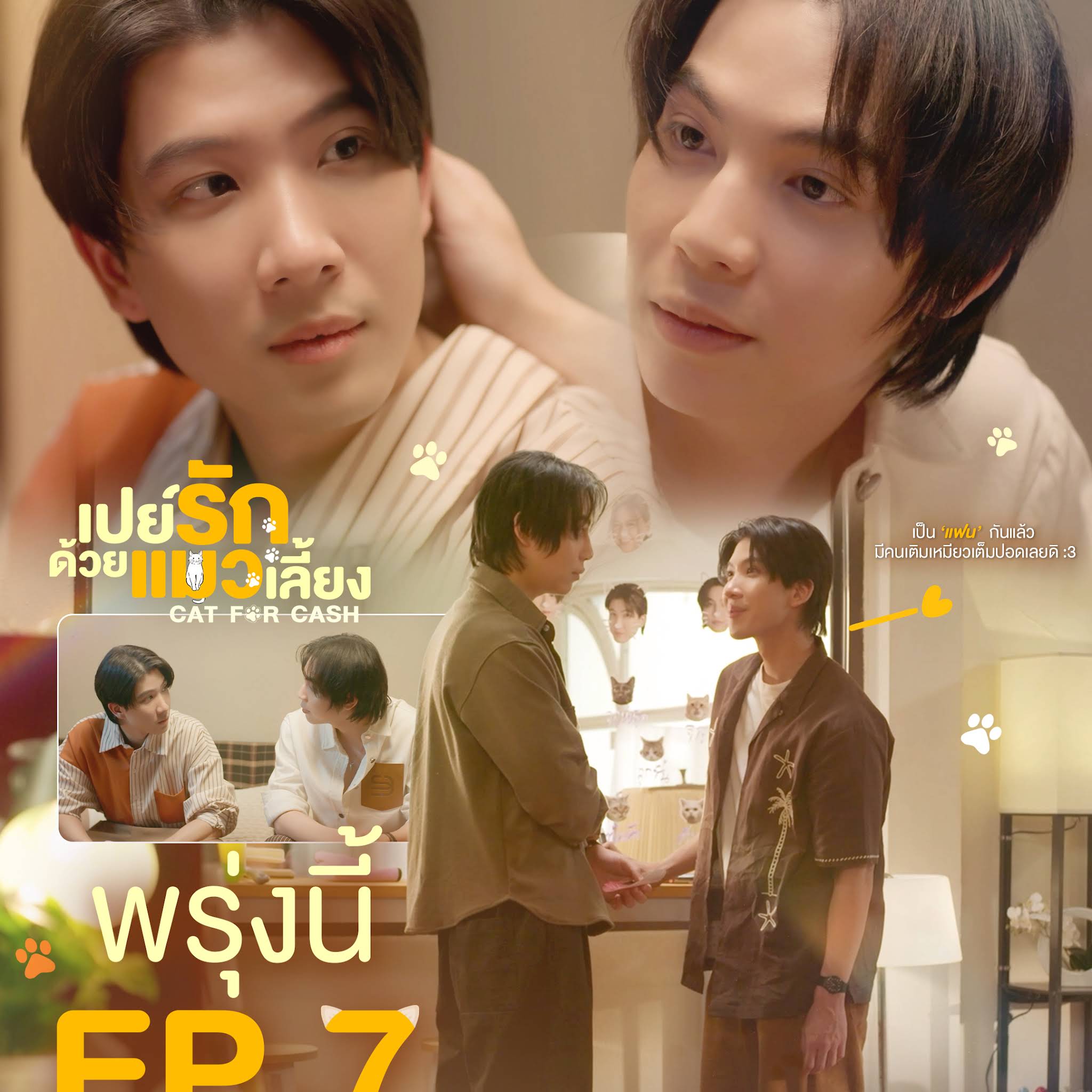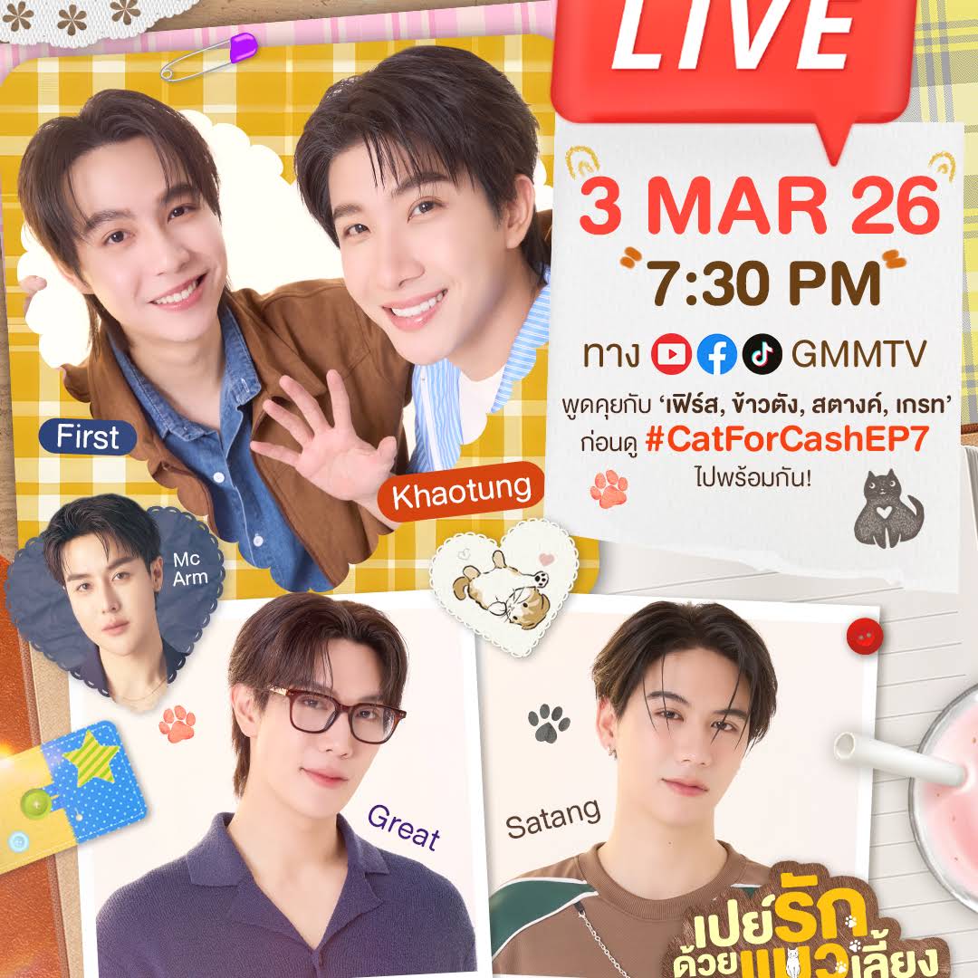 Episode 7 of 'Cat for Cash' is trending because it was scheduled to air on March 4, 2026, generating anticipation and promotional activity among Thai audiences. The series has built a dedicated fan base through its unique humor and cast chemistry, with viewers actively engaging in live discussions and social media promotion ahead of new episode releases. The playful cat-themed concept combined with the cast's popularity drives consistent engagement and sharing of promotional content.