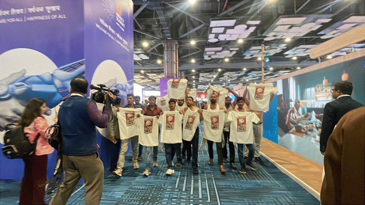 The post promotes a shirtless protest by IYC members at the India AI Impact Summit in Delhi's Bharat Mandapam on February 20, 2026, where they raised slogans claiming 'Prime Minister Compromised hai, India nahi!' accusing PM Narendra Modi of betraying national interests via a US trade deal.[1][2] Protesters entered using QR codes, removed shirts to reveal T-shirts with Modi's image alongside anti-government messages, linking the deal to harm for Indian farmers and youth unemployment.[1][3] The stunt led to four arrests and sharp backlash from BJP leaders, including PM Modi, who called it 'dirty naked politics' shaming India internationally.[4][5]