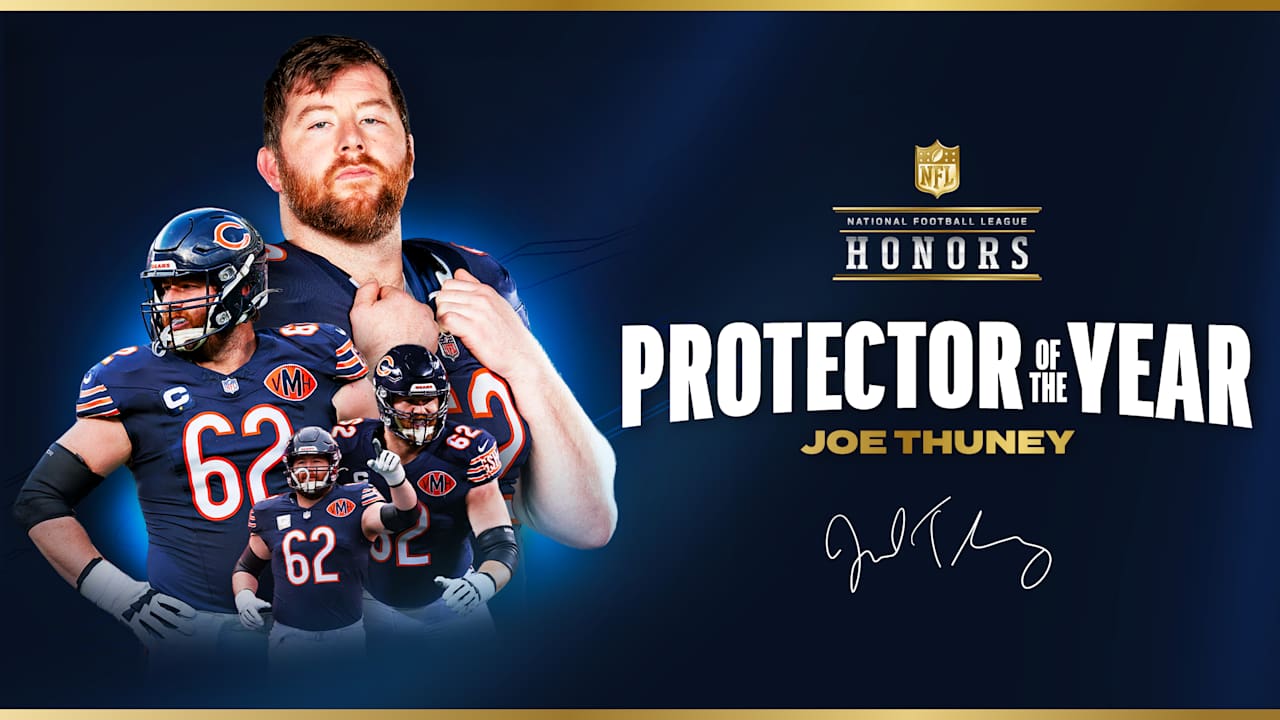 This post announces Joe Thuney, a guard for the Chicago Bears, as the inaugural winner of the NFL's Protector of the Year Award for 2025. The award recognizes the league's top offensive lineman, and Thuney earned the honor after joining the Bears from the Kansas City Chiefs and helping transform their offense from league-worst pass protection to third-best in sacks allowed. The achievement reflects both individual excellence and the broader success of Chicago's revamped offensive line in 2025.