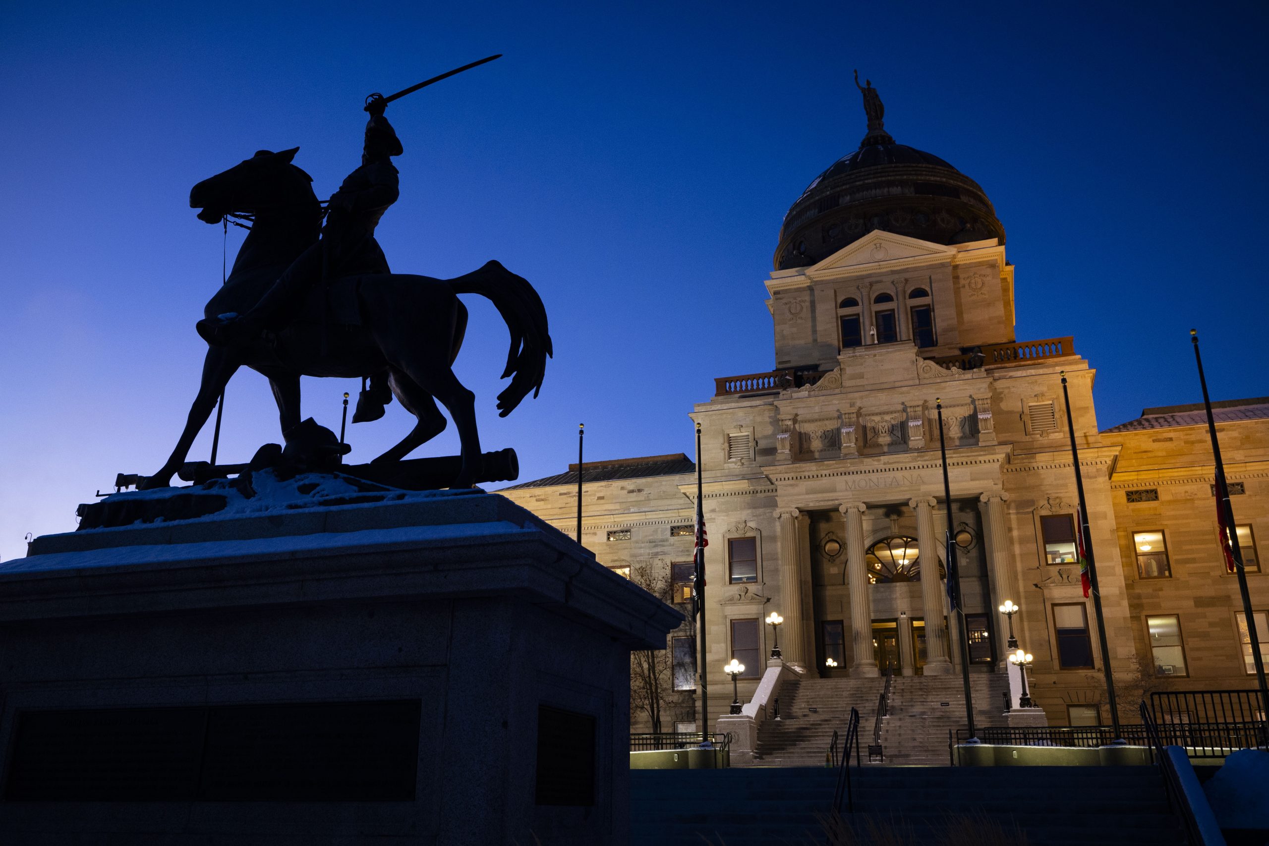 Nine Republican Montana state senators voted with 18 Democrats to form a new majority to pass maj...